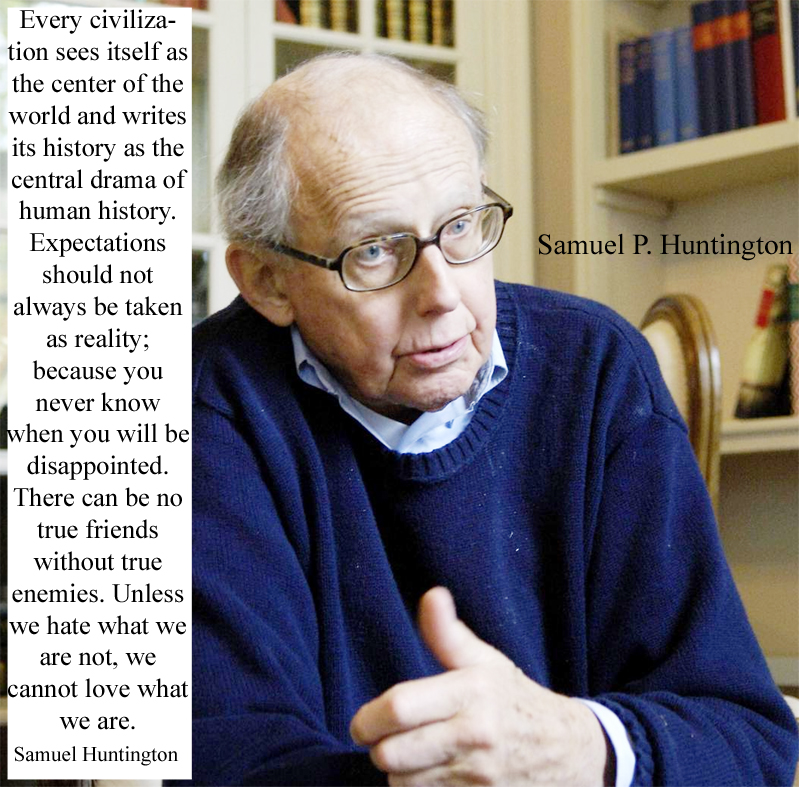सैमुअल हंटिंगटन ने तर्क दिया कि भविष्य के युद्ध देशों के बीच नहीं, बल्कि संस्कृतियों के बीच लड़े जाएंगे और इस्लामी सभ्यता दुनिया पर पश्चिमी प्रभुत्व के लिए सबसे बड़ा खतरा बन जाएगी। हंटिंगटन को नागरिक-सैन्य संबंधों, राजनीतिक विकास और तुलनात्मक सरकार पर अमेरिकी विचारों को आकार देने उन्हें व्यापक स्तर पर प्रसारित करने में मदद करने का श्रेय दिया जाता है। ओपन सिलेबस प्रोजेक्ट के अनुसार, हंटिंगटन राजनीति विज्ञान पाठ्यक्रमों के लिए कॉलेज पाठ्यक्रम पर दूसरा सबसे अधिक उद्धृत लेखक है। इस्लामोफोबिया बढ़ाने और समाजवाद को बदनाम करने में सैमुअल पी. हंटिंगटन की बड़ी भूमिका है। वे दुनिया में अमेरिकी प्रभुत्व, संस्कृति और पूंजीवादियों के बड़े संवाहक रहे हैं। पेश हैं सैमुअल फिलिप्स हंटिंगटन के कुछ उल्लेखनीय उद्धरण