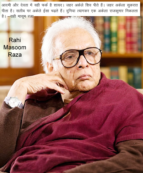 मुसलमान लड़कों के दिलों में दाढ़ियां और हिंदू लड़कों के दिलों में चोटियां उगने लगीं। यह लड़के फिजिक्स पढ़ते हैं और कॉपी पर ओउम् या बिस्मिल्लाह लिखे बिना सवाल का जवाब नहीं लिखते। -राही मासूम रजा