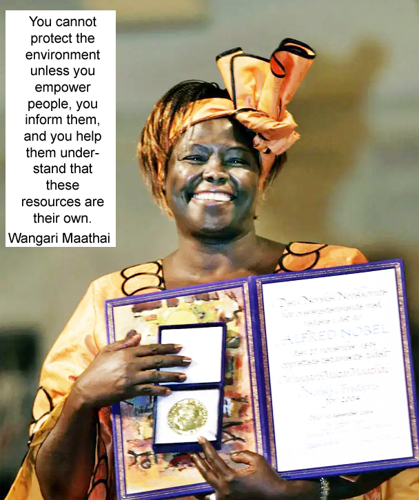 1 अप्रैल 1940 को इहिथे, टेटू, केन्या में वांगारी मथाई (वांगारी मुता) का जन्म हुआ। वांगारी मथाई प्रभावशाली केन्याई सामाजिक, पर्यावरण, राजनीतिक और महिला अधिकार कार्यकत्री बनीं। उन्होंने पर्यावरण-संबंधी गैर-सरकारी संगठन ग्रीन बेल्ट मूवमेंट की स्थापना की। जिसका मुख्य उद्देश्य पेड़ लगाना, पर्यावरण संरक्षण और महिलाओं के अधिकारों के लिए काम करना था। वर्ष 2004 में वह नोबेल शांति पुरस्कार पाने वाली पहली अफ्रीकी महिला बनीं। वांगारी मथाई के कुछ प्रेरक, विचारणीय, अनुकरणीय उद्धरण